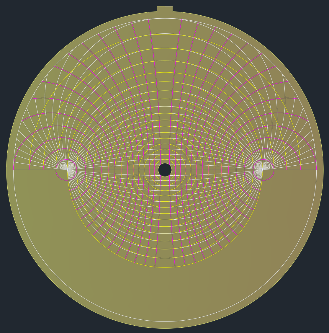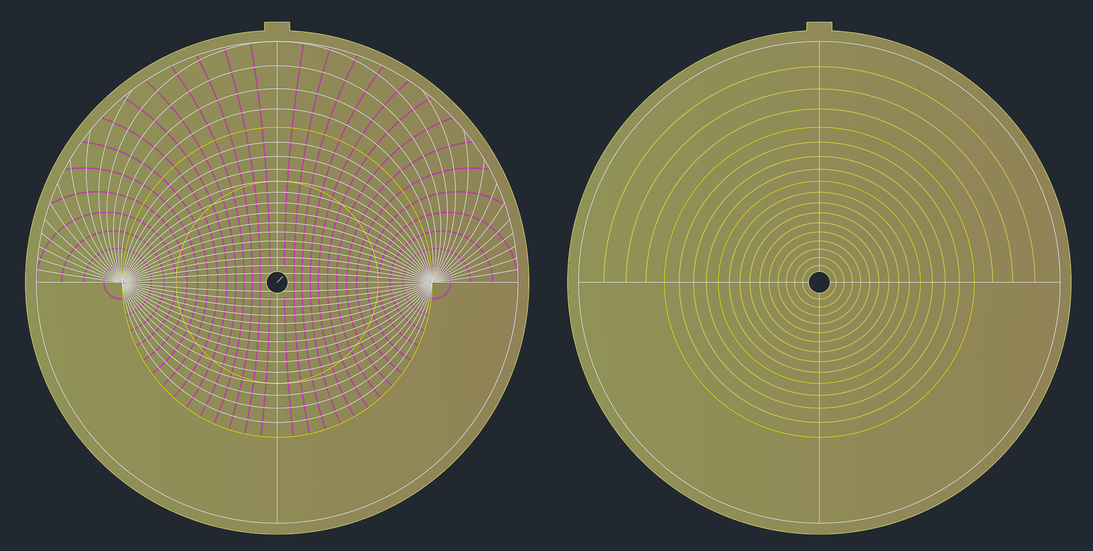 El fundamento es similar al de los astrolabios universales ya vistos, pero con la diferencia que ahora se mantiene la proyección del astrolabio convencional, todas las líneas de esta lámina también son resultado de la proyección estereográfica desde el polo sur celeste sobre el plano del ecuador.