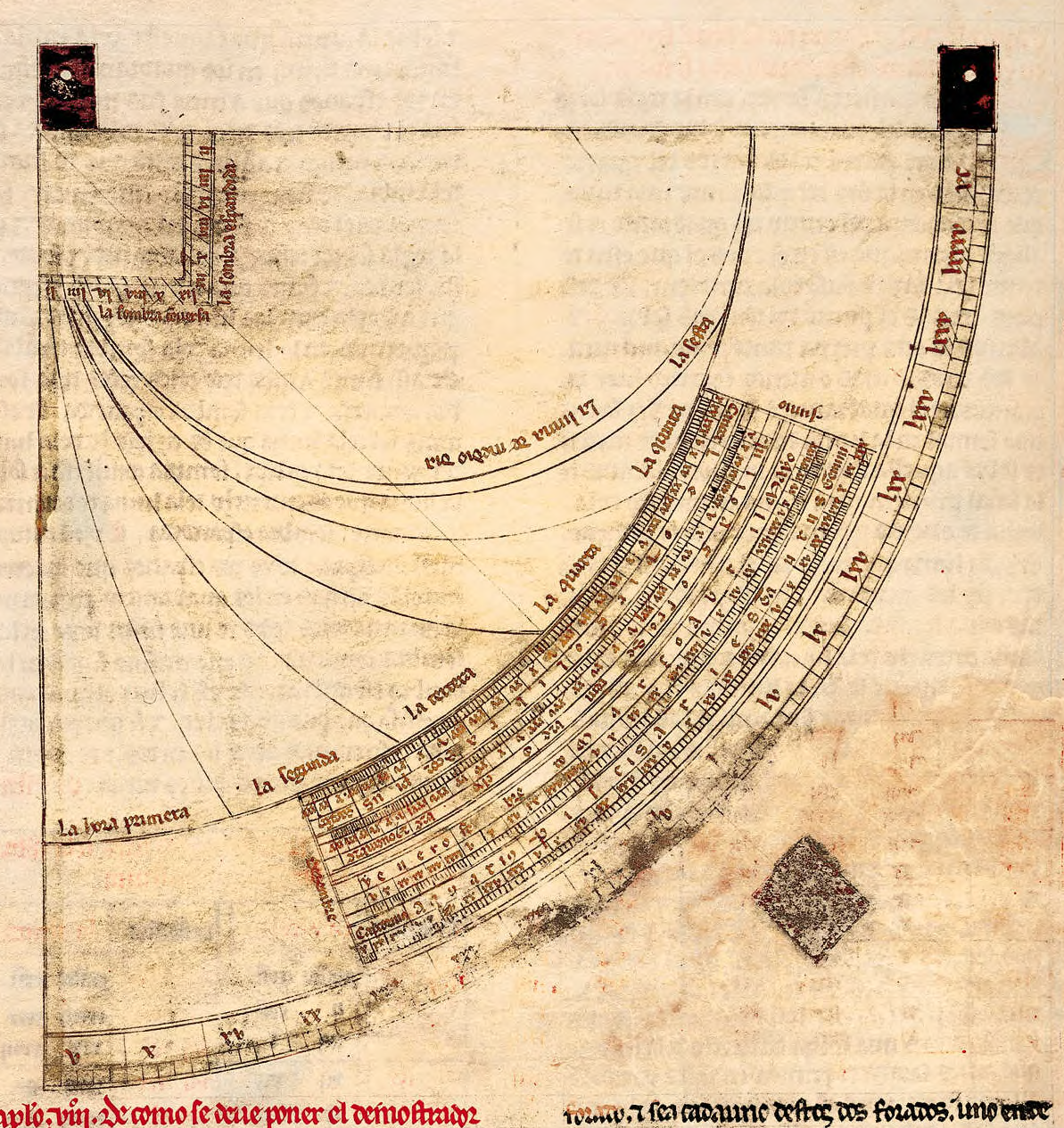 “Un estudio del uso de la lámina de astrolabio universal de Ibn Baso” de Emilia Calvo, 2000; aquí se analizan las diferentes líneas que componen la lámina: